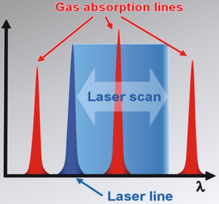 通过调制可调节激光器的电流,可以扫描气体的整个吸收峰,得到气体吸收单线吸收光谱数据,由此可以分析气体的浓度。吸收光谱的单线特性可以避免背景气体组分对被测气体的交叉吸收干扰,保证测量的准确性。
